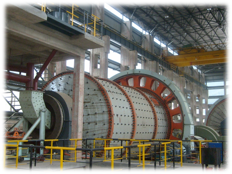 棒磨机的主体是一个水平装在两个大型轴承上的低俗回转筒体。棒磨机由电动机通过减速机及周边大齿轮减速传动、或由低转速同步电机直接通过周边大齿轮减速传动,驱动回转不回转,简体内部装有适当的磨矿介质在离心力和磨擦力的作用下,提升到一定的高度,呈抛落或泄落状态落下。被磨制的物料由给料口连续地进入筒体内部,被运动的磨矿介质所粉碎,并通过溢流和连续给料的力量将产品排出机外,以进行下一段工序处理。大型磨机备有慢速传动装置可使主机获得0.15r/min的转速,供盘车、维修或松动负荷时用同时备有顶罐装置供检修顶起回转部用。