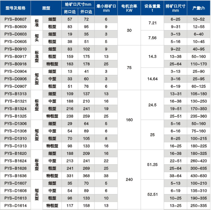 产品简介:PYS系列复合式破碎机是消化吸收国外先进圆锥破碎机的技术研制的。这是一种较PYT弹簧式圆锥破碎机更为先进的产品, 其生产能力、产品粒度均匀性、细碎产品的粉矿率、零部件寿命、作